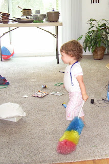 After the fun was over it was down to work. My uncle's daughter and family came into town and helped us clean out his house as we're putting it up for rent. Tatum got right down to work.