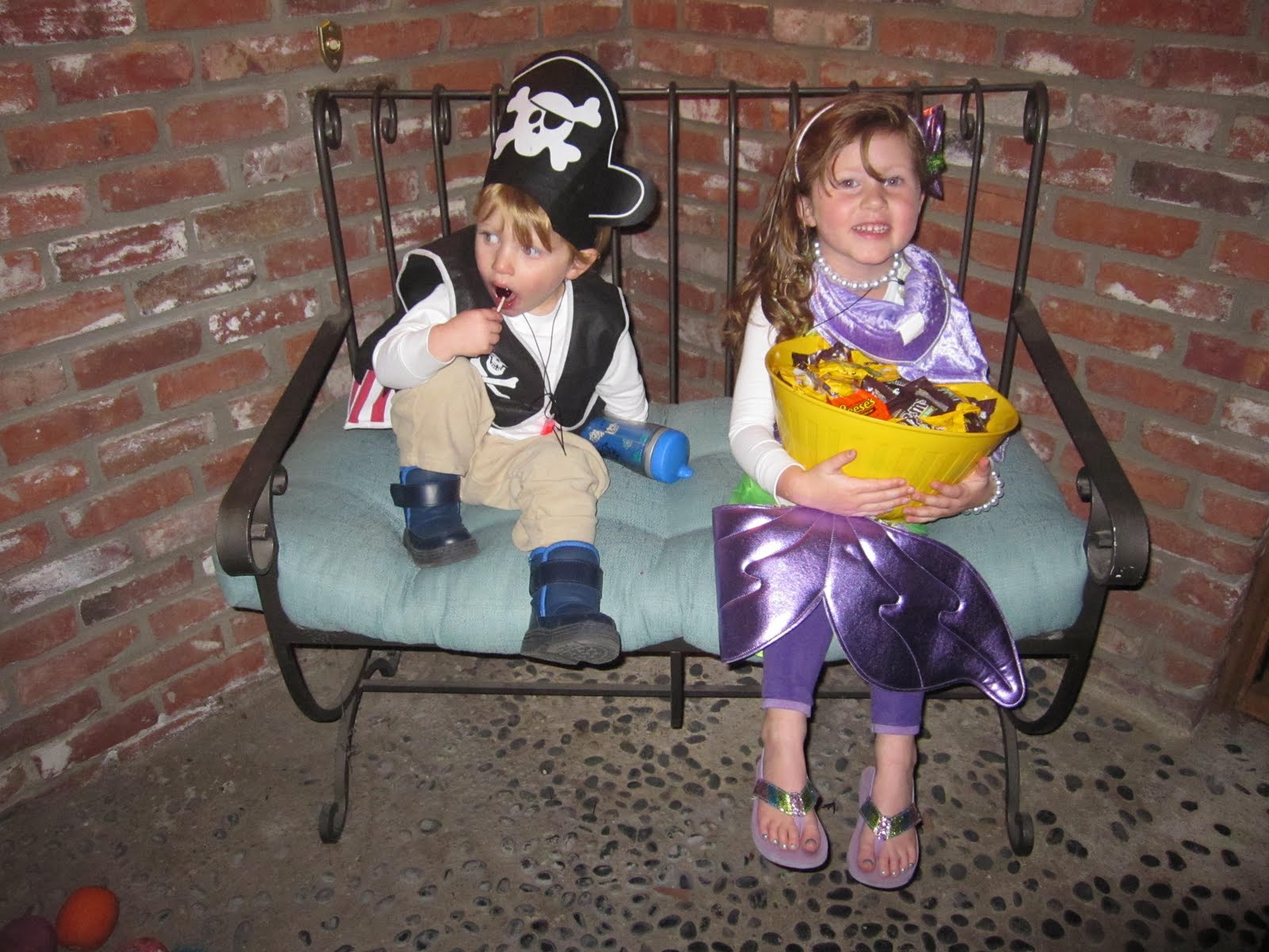 Halloween! We headed to our wonderful neighbors holiday party up the street. Our beautiful mermaid and our scary pirate!